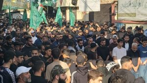 شيع الآلاف من اللاجئين الفلسطينيين اليوم الخميس 21-11-2025 شهداء المجزرة الإسرائيلية في مخيم عين الحلوة إثر استهداف الاحتلال ملعب الشهيد محمد طه، والتي أسفرت عن ارتقاء 13 شهيداً من أبناء المخيم.
