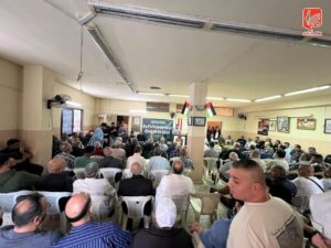 نظمت الفصائل الفلسطينية في مخيم البداوي اليوم الجمعة في قاعة اللجنة الشعبية مجلس تبريكات باستشهاد الشبان الثلاثة عشر الذين استشهدوا في مخيم عين الحلوة إثر غارة صهيونية جبانة مساء الثلاثاء الفائت.