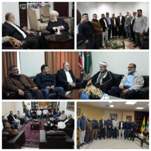 ثم انتقل الوفد لزيارة سماحة الشيخ ماهر حمود رئيس هيئة علماء المقاومة ثم الإخوة في حزب الله حيث استقبلهم الشيخ زيد ضاهر على رأس وفد من الحزب واختتم الوفد جولته بزيارة الإخوة في الجماعة الإسلامية حيث استقبلهم الدكتور بسام حمود نائب رئيس المكتب السياسي على رأس وفد من الجماعة.